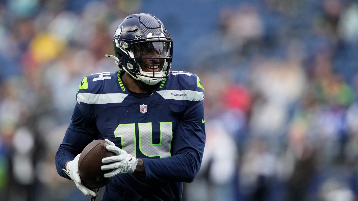 2XYGTJE Seattle Seahawks wide receiver DK Metcalf smiles while warming up before a preseason NFL football game against the Cleveland Browns, Saturday, Aug. 24, 2024, in Seattle. (AP Photo/Lindsey Wasson)