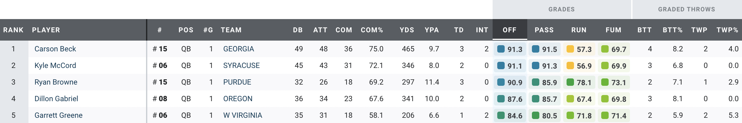 Highest-Graded Power Five QBs in Week 7
