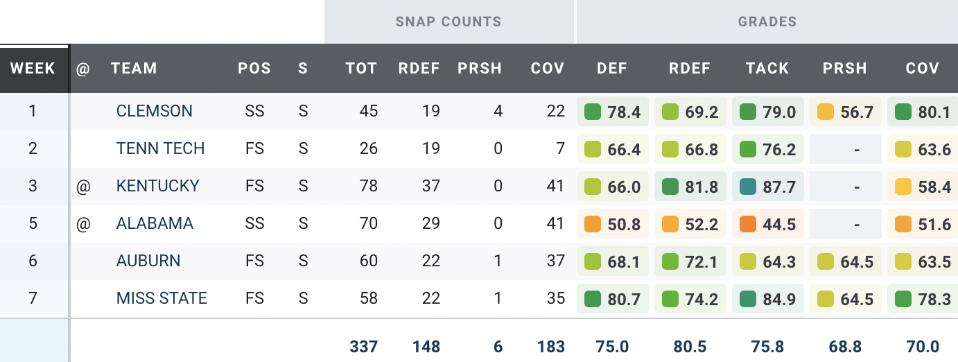 PFF grades are now live for every game from Week 7 of the 2024 college football season.