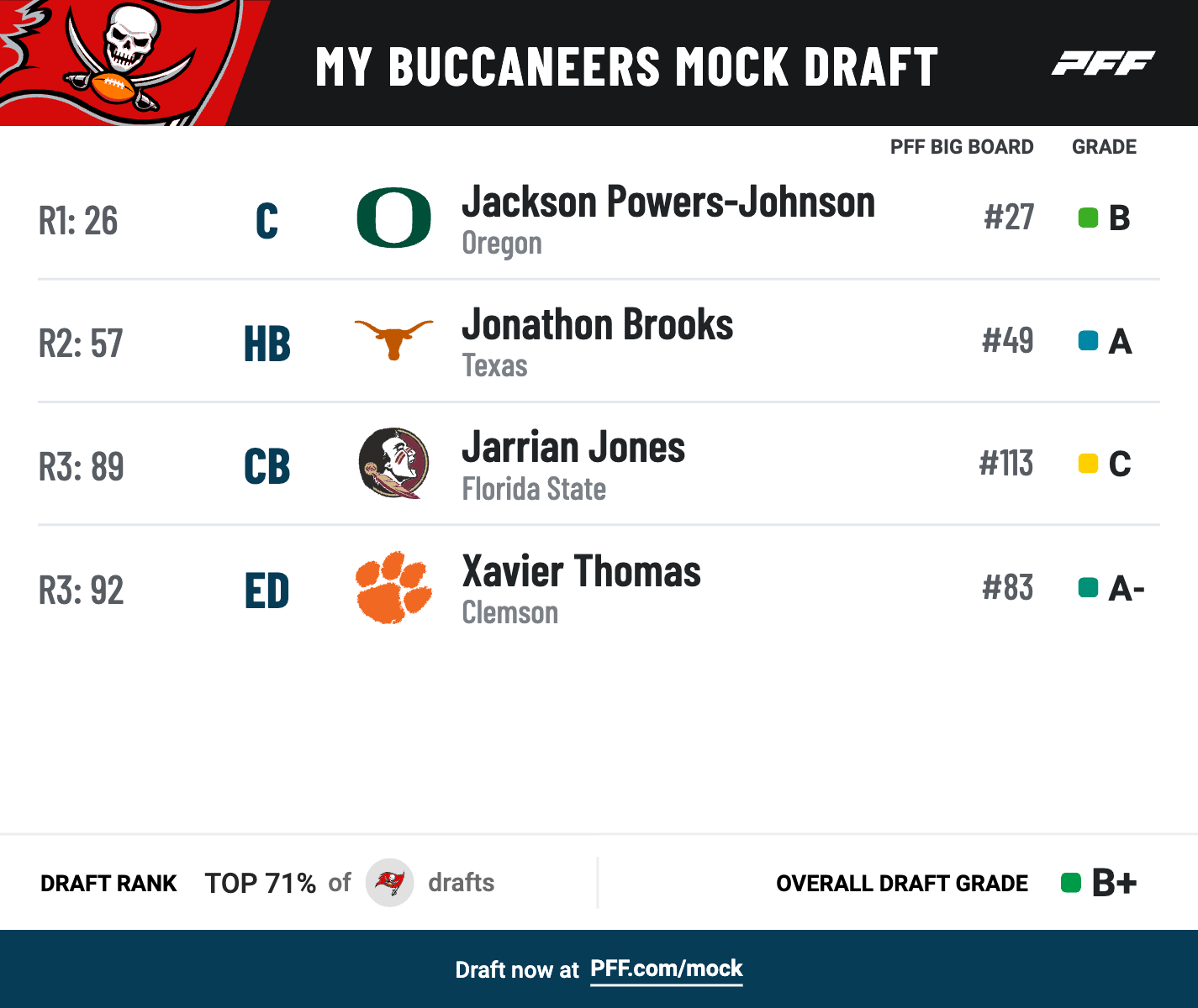 • Draft and trade for yourself: Try PFF's Mock Draft Simulator — trade picks and players and mock for your favorite NFL team.