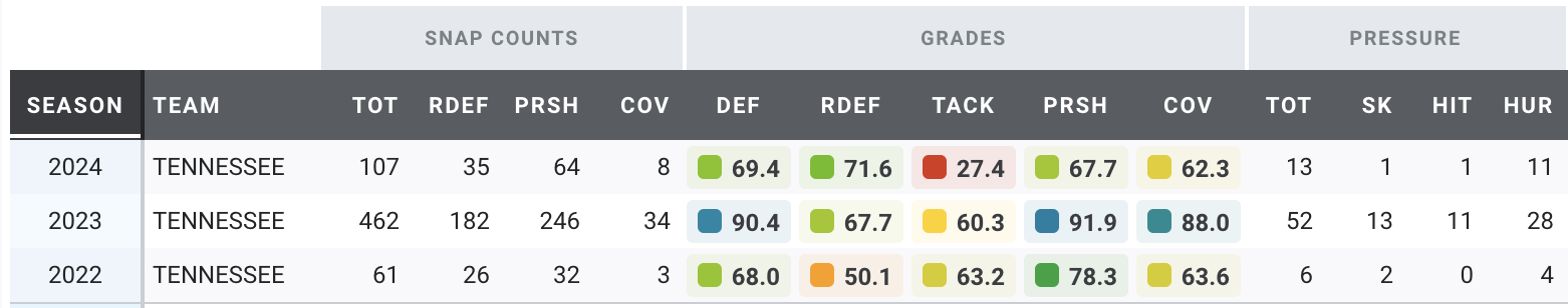 James Pearce Jr.: Career PFF grades