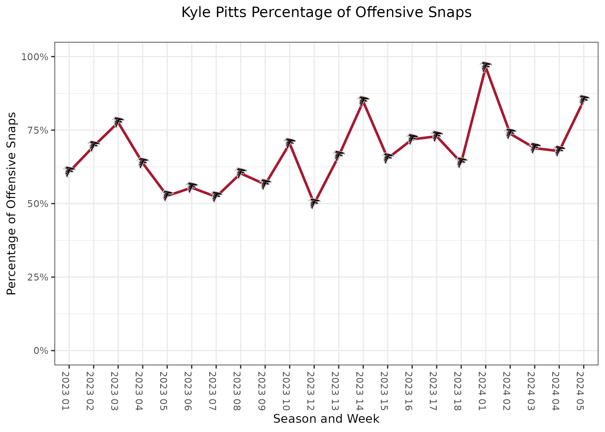 Kyle Pitts bounces back: Pitts playing time and statistics bounced back after hitting season lows last week.