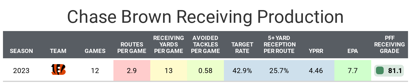 McLaughlin was the sixth-highest-graded running back last season with an 86.2 offensive grade. His yards per carry and avoided tackle rate were both top 10 among running backs. He also led all running backs in targets per route, leading to a top-10 yards per route run figure (1.63). After Samaje Perine‘s departure, McLaughlin should take on a larger role in the passing game, making him a potential fantasy starter.