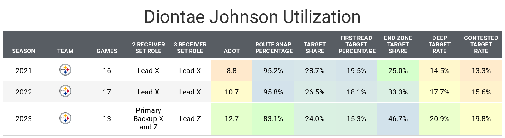 Johnson was able to finish as WR28 in 2022 while tied for sixth in targets with Kenny Pickett in his rookie season. He was traded to the Carolina Panthers where he should be their X receiver and be the clear leader on the team in targets. Everything indicates we could be in store for a similar season to 2022 this year if Young can’t improve. If Young can improve, we could see a season like 2021 where he was the overall WR8.
