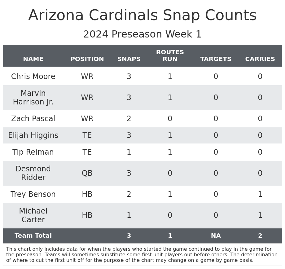 - Marvin Harrison Jr. started but only played on the first drive while most offensive players played much longer. It’s common enough for a team to rest their starters outside of rookies who are expected to start, so this shouldn’t concern anyone.