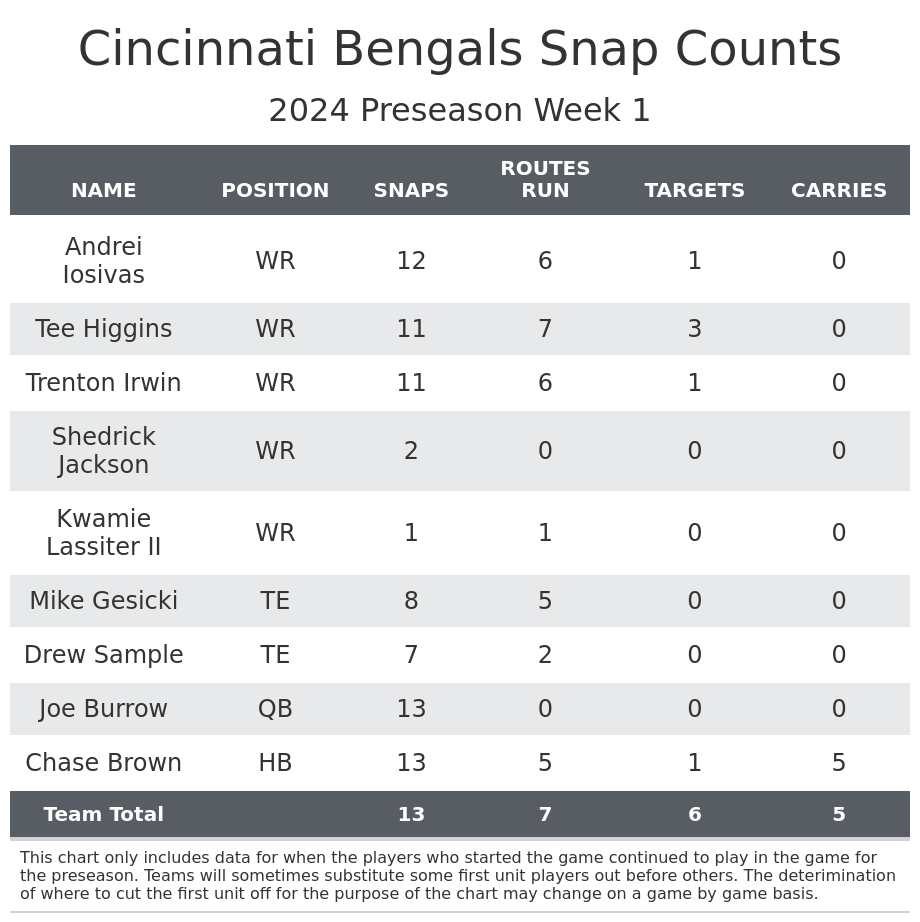 - Ja’Marr Chase had the night off, so Trenton Irwin and Andrei Iosivas played with the starters. Irwin played on the outside while Iosivas manned the slot. They are the two primary contenders for the third wide receiver job.