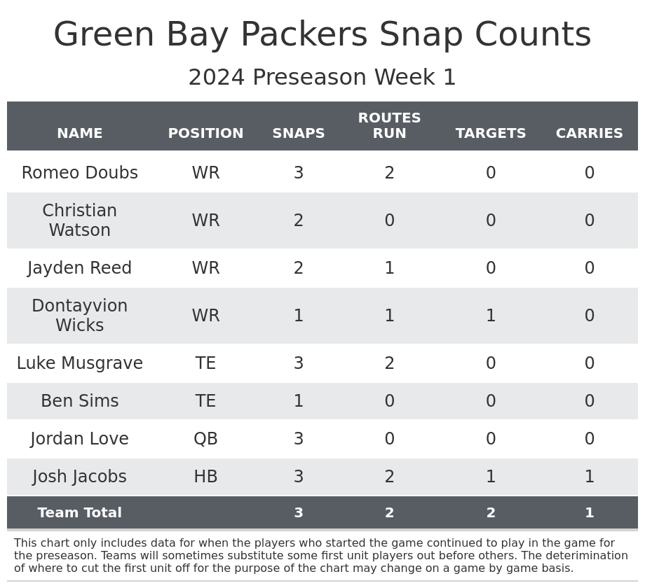 The Giants rested slot receiver Wan’Dale Robinson and veteran Darius Slayton. Nabers played 11 of his 12 snaps lined up out wide, so it seems clear these three are penciled in as the starting wide receivers. It was noted in Nabers’ player profile that he played better from the slot than out wide in college, and if he’s stuck out wide, that could hurt his fantasy value a little bit.