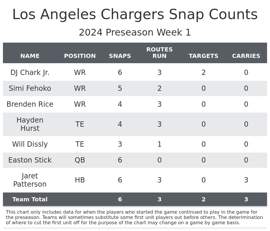 - The Chargers rested quarterback Justin Herbert, running backs Gus Edwards, J.K. Dobbins and Kimani Vidal, and wide receivers Joshua Palmer and Ladd McConkey.