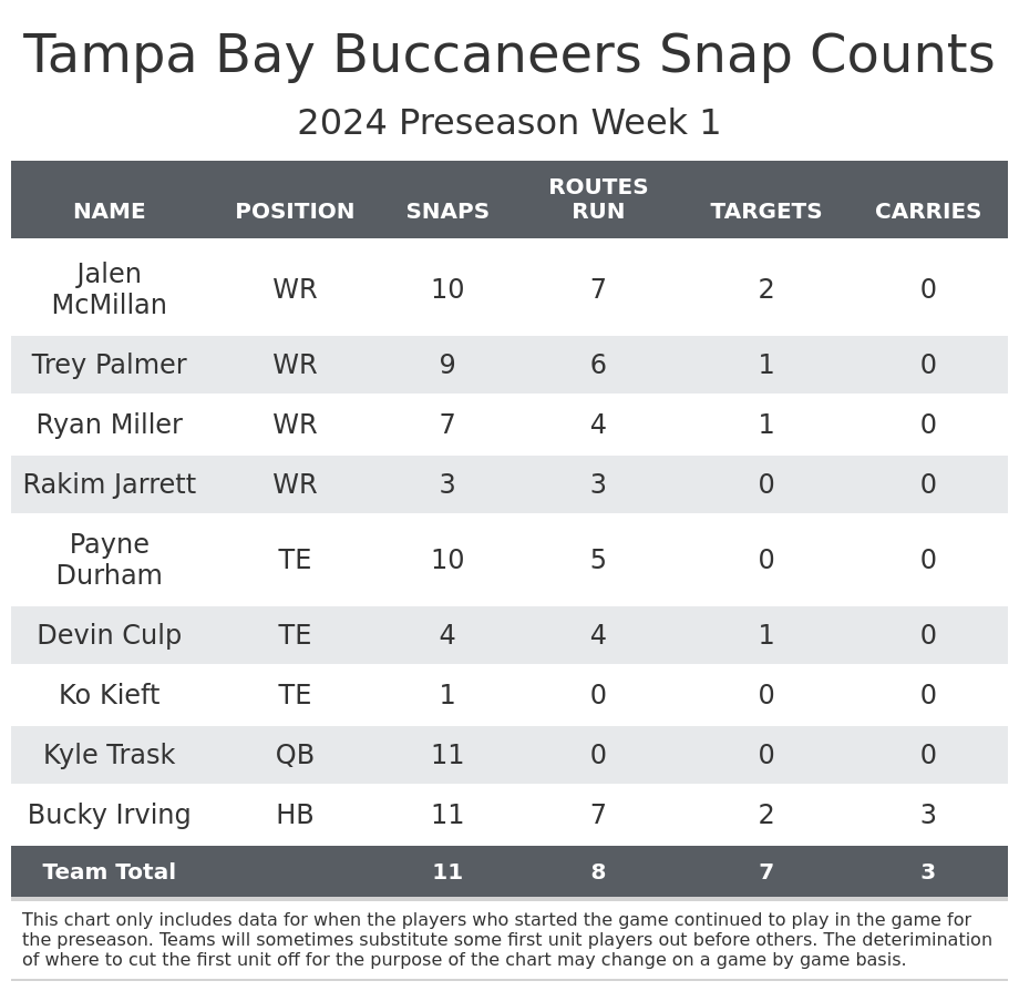 There have been reports that Godwin would play in the slot more this season, but Palmer was primarily in the slot last year and McMillan played the vast majority of his snaps in the slot at Washington. In this game with Evans and Godwin resting, both Palmer and McMillian played the vast majority of their snaps on the outside. They both played in the first quarter and then stopped playing while other starters kept going. Neither pulled ahead of the other in this game, but it’s clear the Buccaneers were being truthful when saying Godwin would play in the slot this season, as the winner of this competition will be playing out wide.
