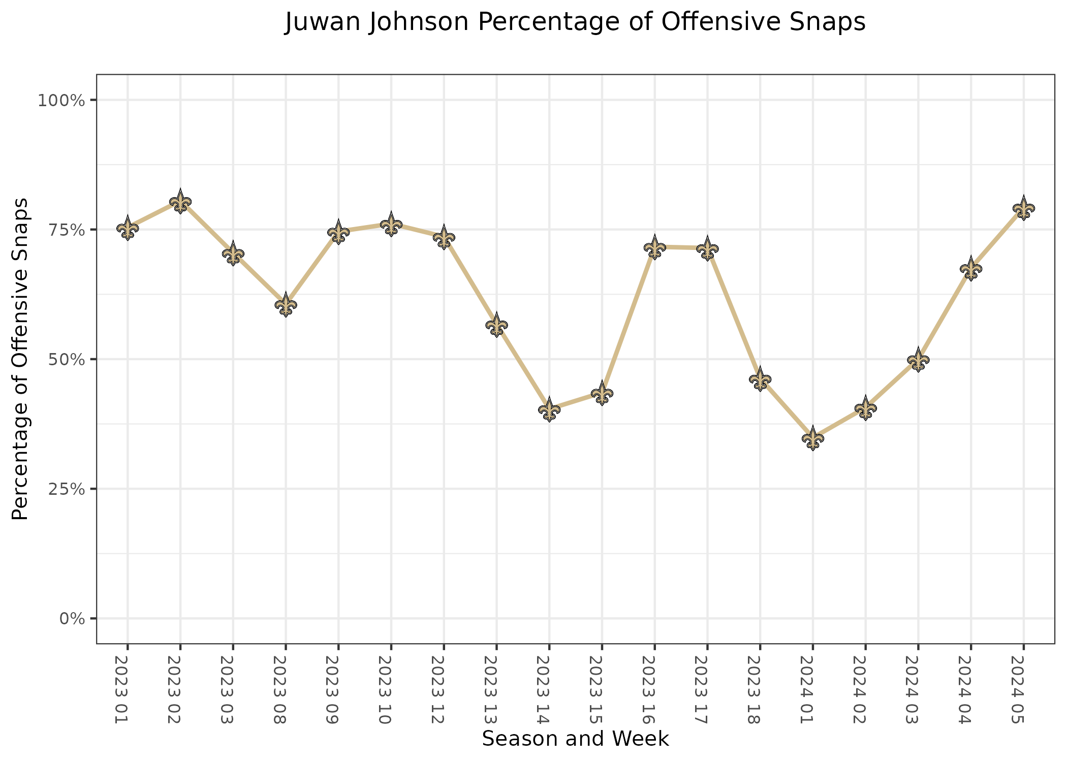 Johnson suffered a fractured foot in mid-June and returned to practice in late August. In each of the first three games, he played 50% of the offensive snaps or less, with Foster Moreau serving as the lead tight end. Last week was Johnson’s first time playing more than Moreau, and this week he was on the field for an even higher percentage of snaps and routes.