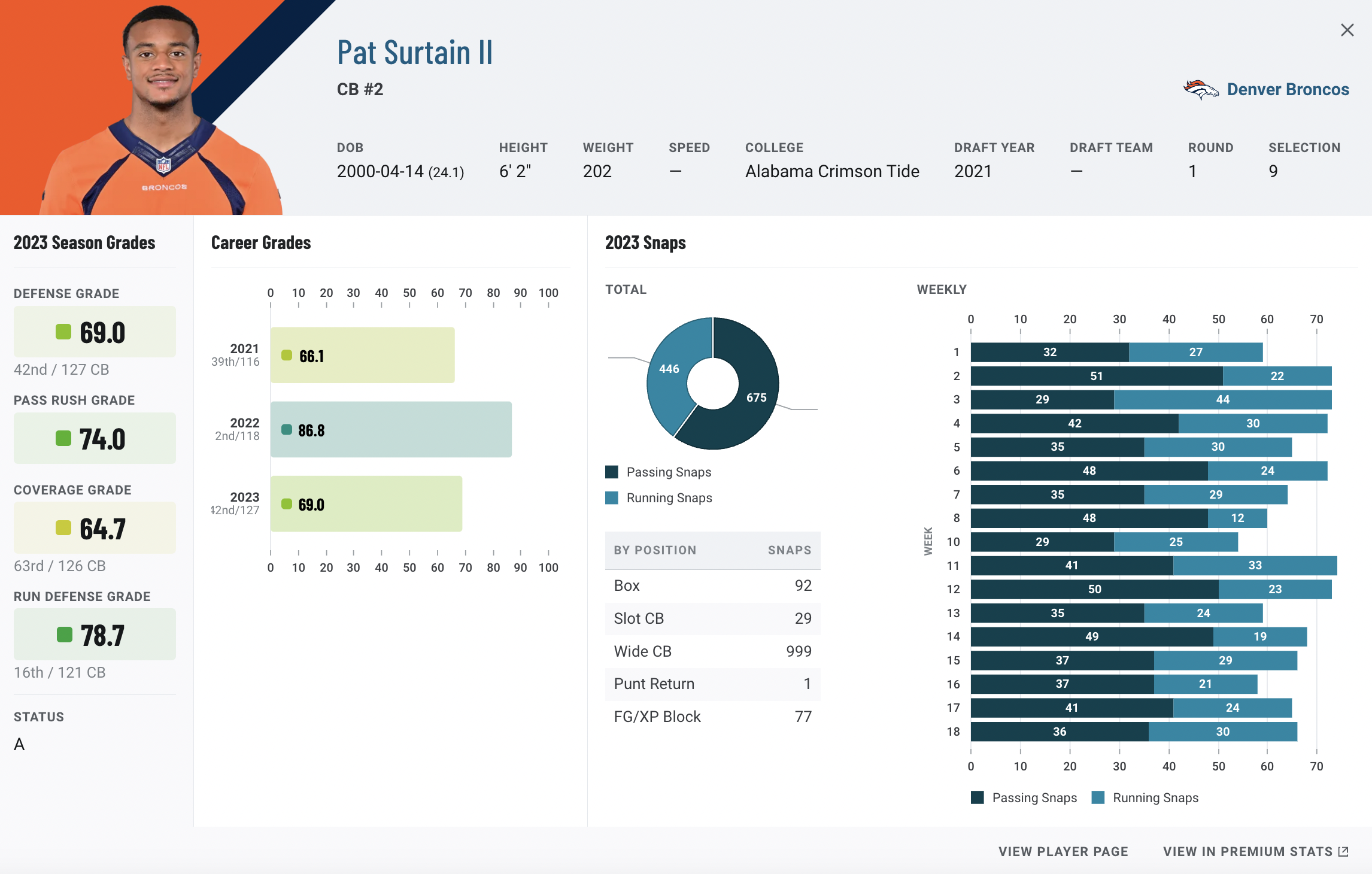 9. CB Patrick Surtain II, Denver Broncos (2021)