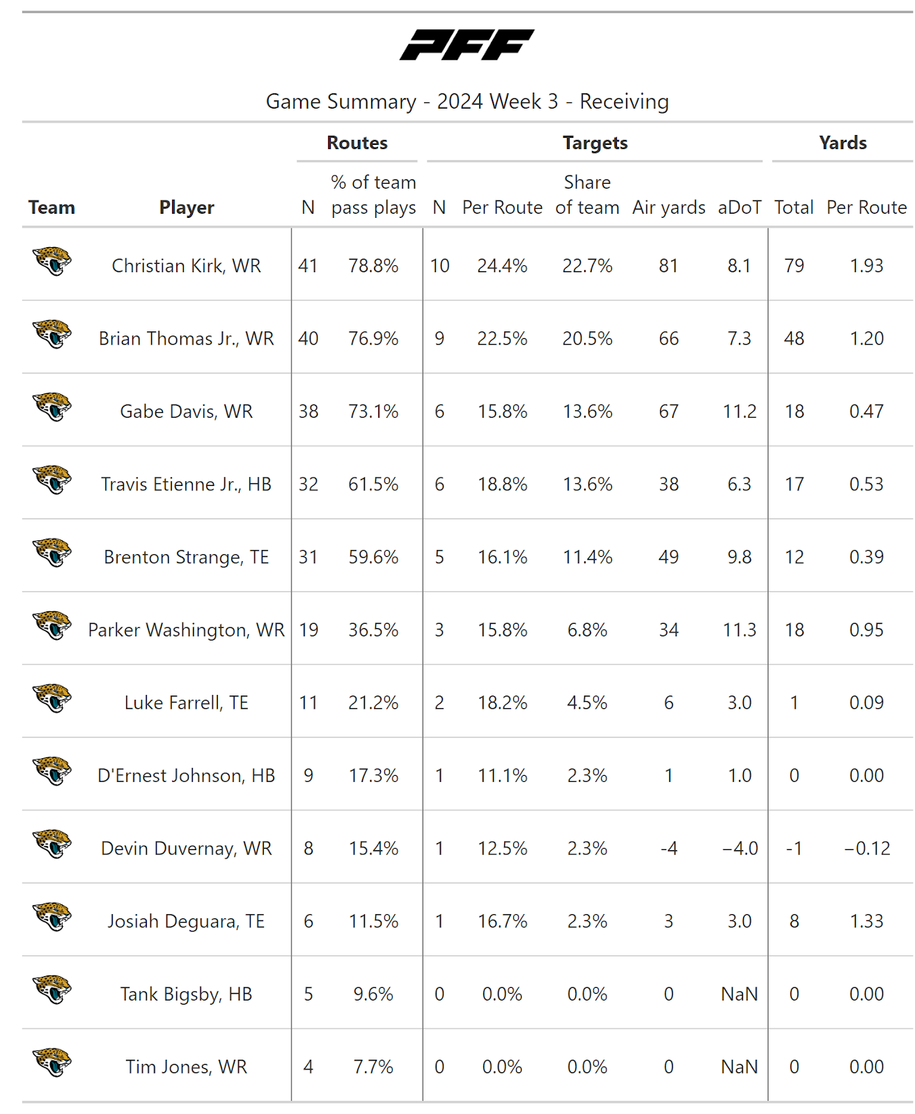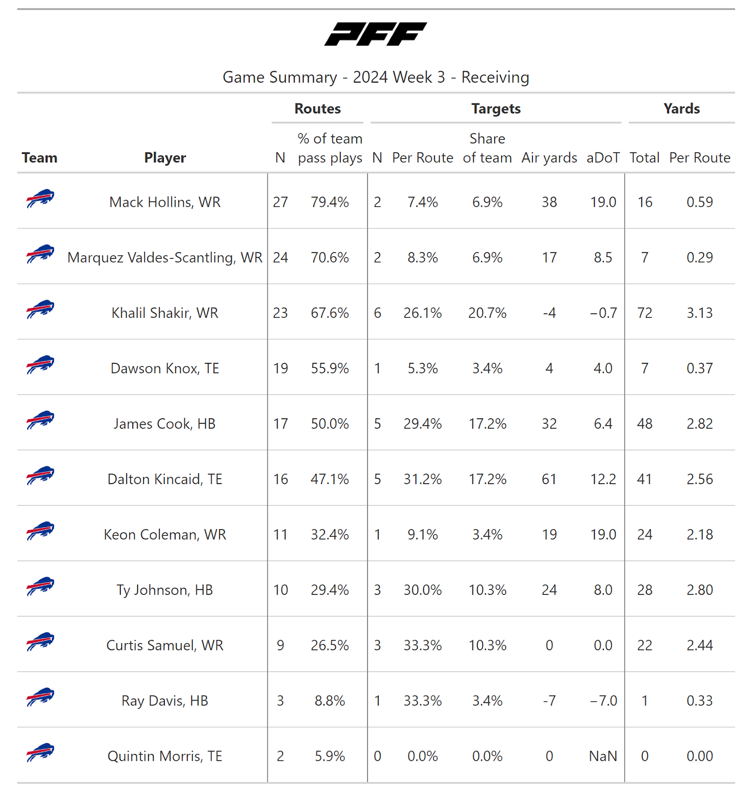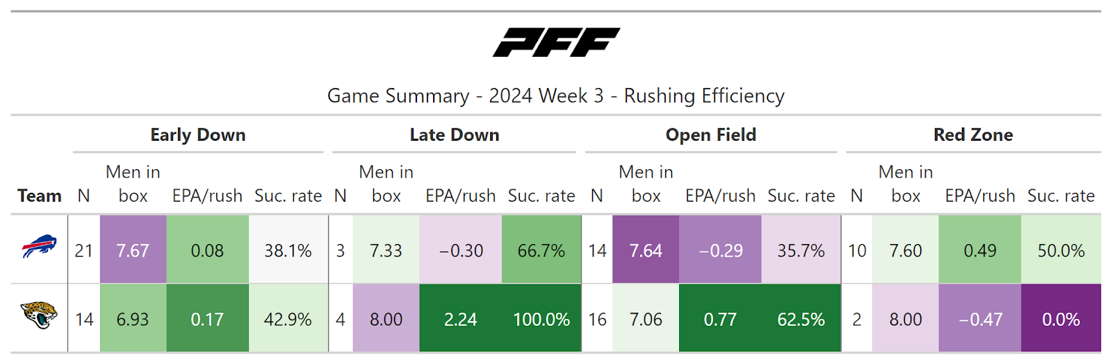 According to PFF's new noise-canceled score metric, this game wasn’t close, as we could all see. The Bills not only moved the ball at will but also scored touchdowns at will, as the Jaguars failed to stop them from doing so on every drive in the first half.