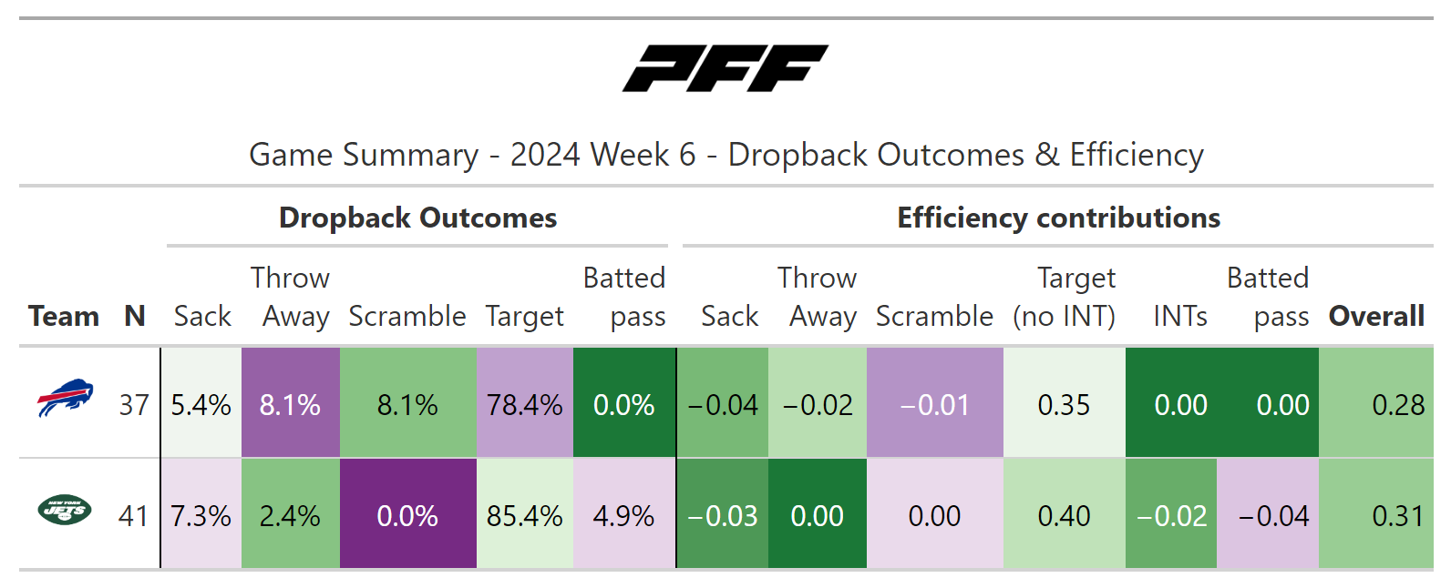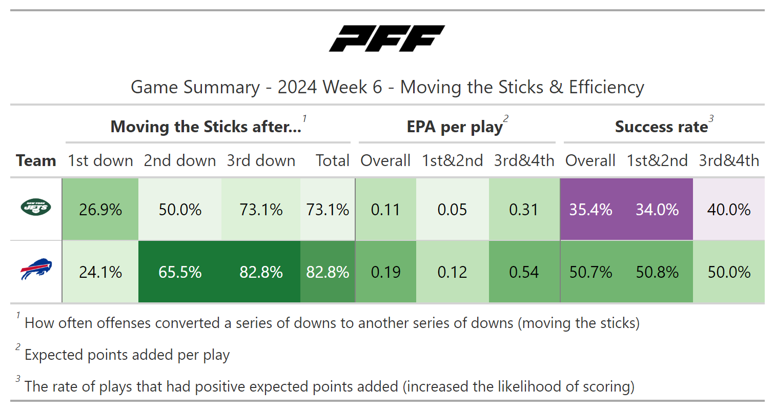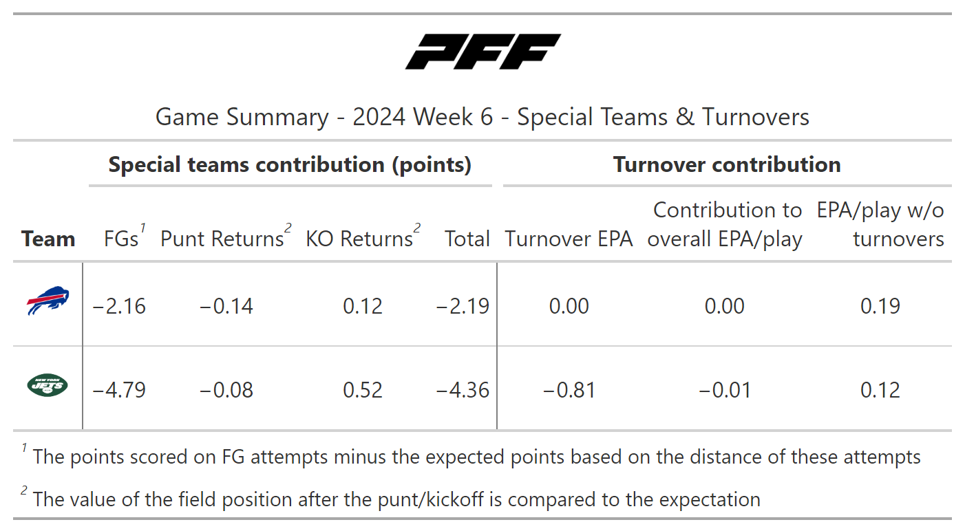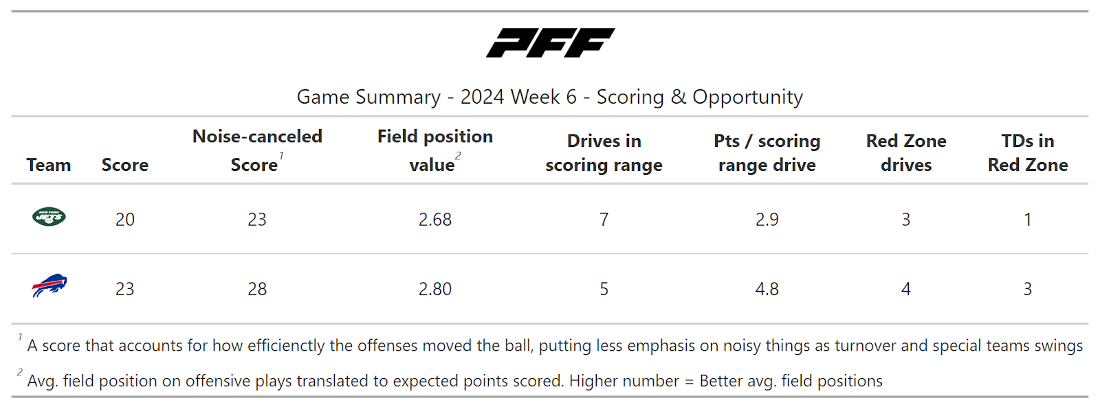 According to PFF's noise-canceled score metric, the Buffalo Bills were indeed the better team because they moved the ball more efficiently throughout the game. The internal computation, of course, doesn’t work like this, but it makes sense that the noise-canceled score is very close to the final score, adjusted for the missed field goal and the Hail Mary.
