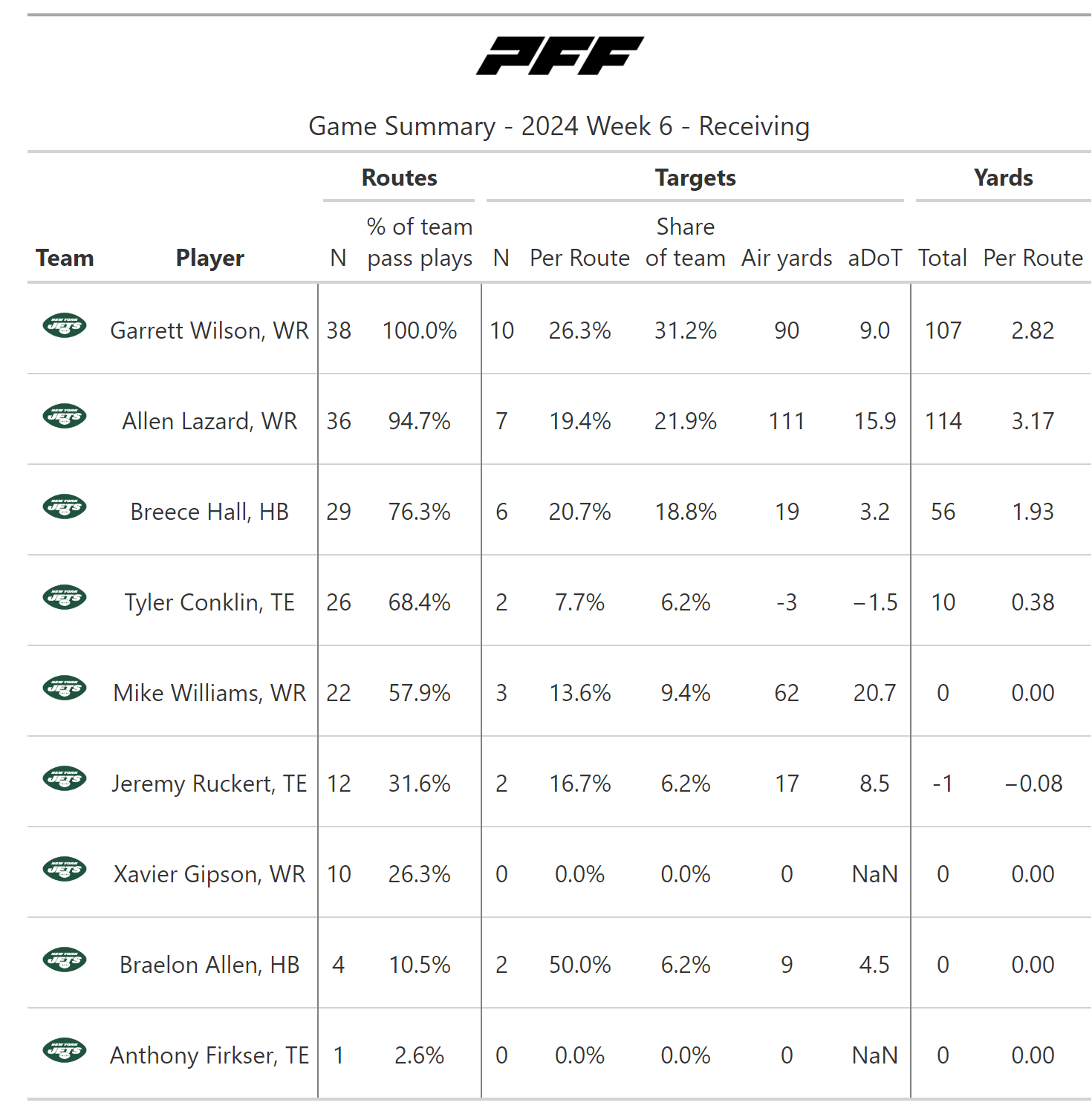 Garrett Williams is still Aaron Rodgers‘ No. 1 target, and he had a very successful night. But once again, Allen Lazard had the more efficient targets overall, including a 52-yard reception.