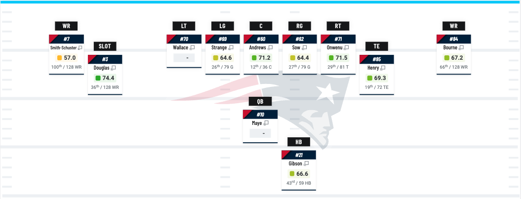 • Baptism by fire: With the 68th pick in the draft, the Patriots addressed the tackle position by selecting Penn State’s Caedan Wallace. Wallace is a mountain of a man at 6-foot-5 and 341 pounds. He played pretty well this past season in Happy Valley, too, posting a 70.4 PFF grade and a 72.8 pass-block grade.