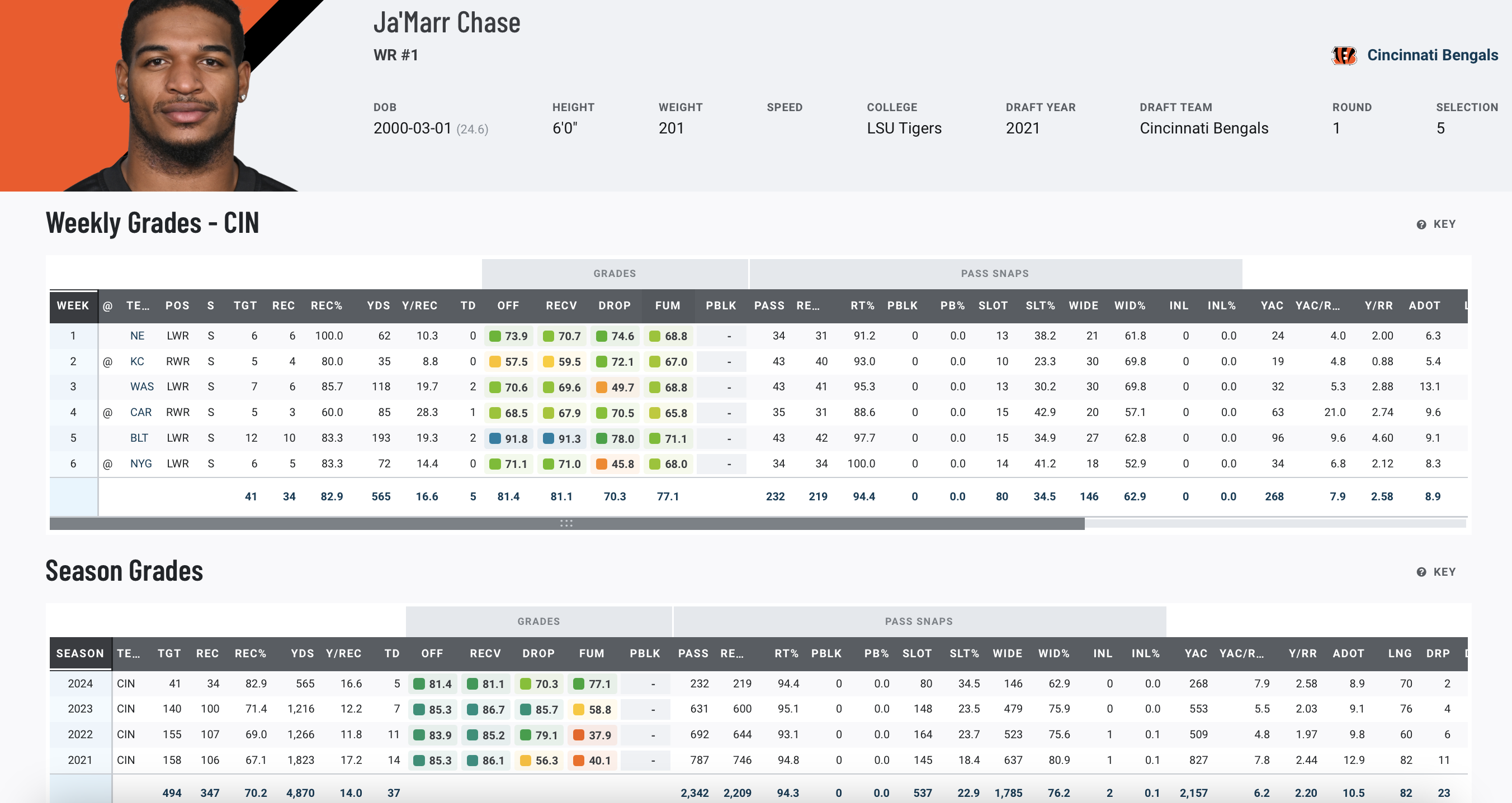 As a rookie, Kyle Pitts looked on his way to being the generational talent that most of the draft community had him pegged. However, injuries slowed him down in Year Two, and that top-end potential doesn’t feel like any guarantee. That’s not the case when it comes to Chase, who has lived up to the hype and established himself as one of the top receivers in the game.