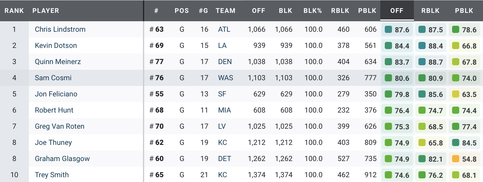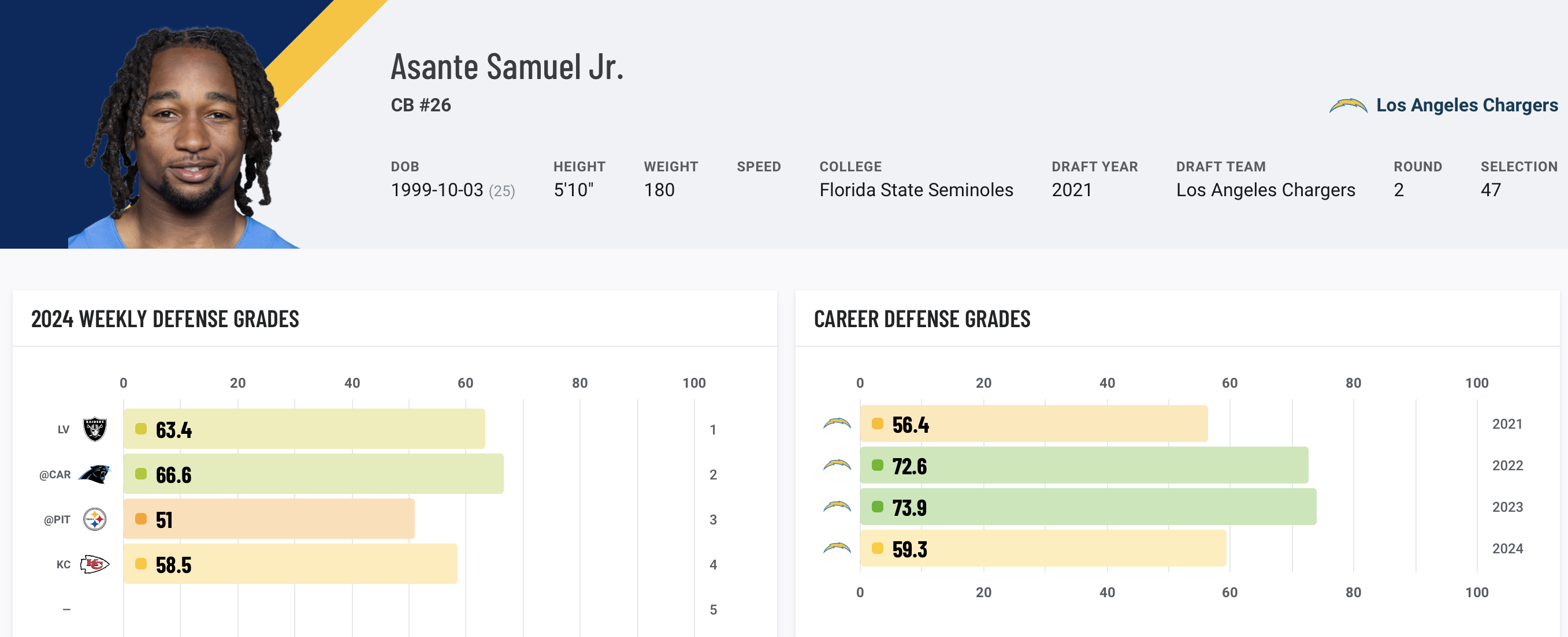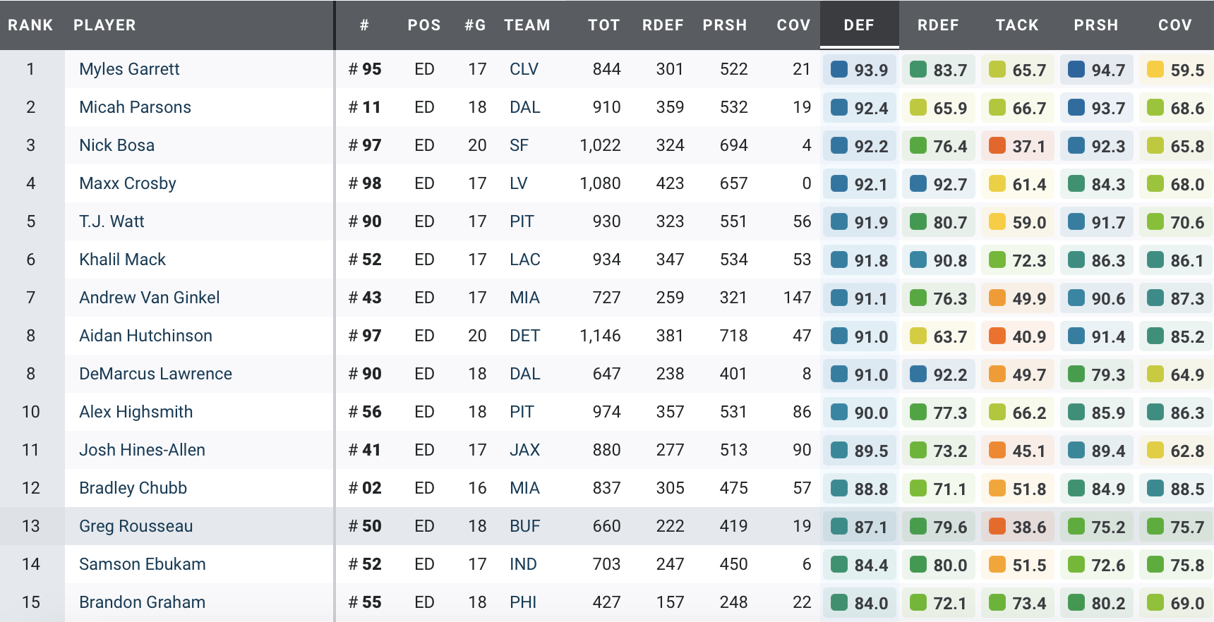 The Justin Fields selection just didn’t work out, so the Bears can get set about putting in the hard yards when it comes to fixing their offensive line. Humphrey has become the best center in the NFL, finishing top of our rankings in two out of three seasons and showing no signs of slowing down this year.