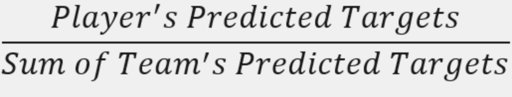 • Focusing on target shares relative to team pass attempts rather than raw target counts. This adjustment should help account for variability in game scripts and passing frequency, such as situations where teams like the Falcons throw 58 times in a game.