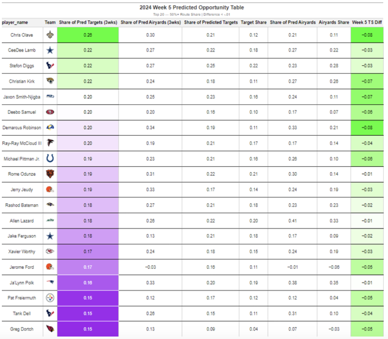 • If you rely on metrics like Target Share or Air Yards Share in your analysis, what I've built using route-level PFF data is superior in every way and should command your attention.