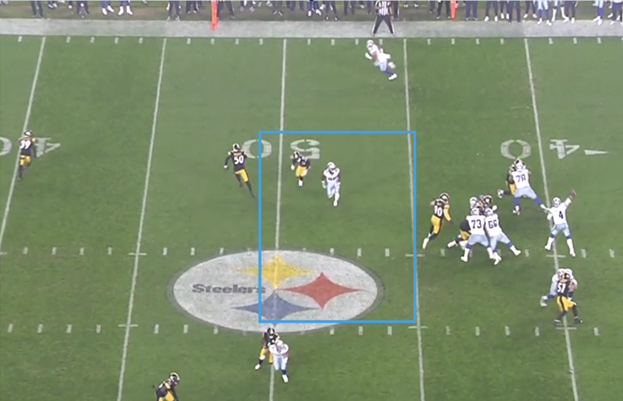 Based on my model, Lamb had a 60% chance of being targeted, given the play and the surrounding conditions. Still, when a receiver is that wide-open, it’s tough to pass up the guaranteed yardage.