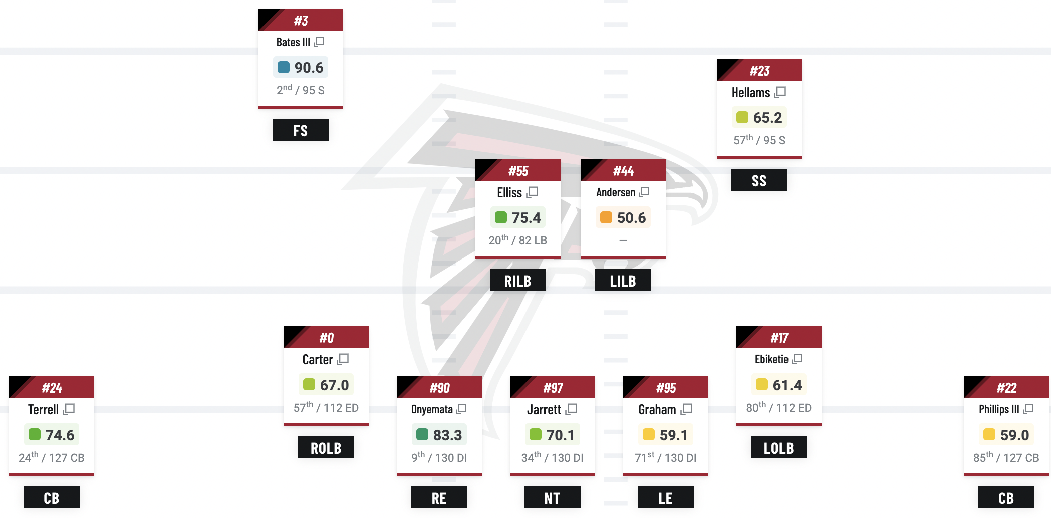 • Kyle Hamilton and Jessie Bates III round out the top three: Hamilton has proven to be a versatile chess piece for the Ravens, while Bates thrived as a ballhawk in his first year as a Falcon.
