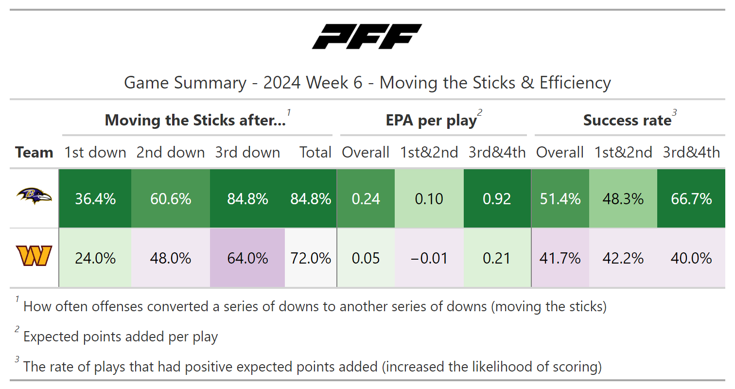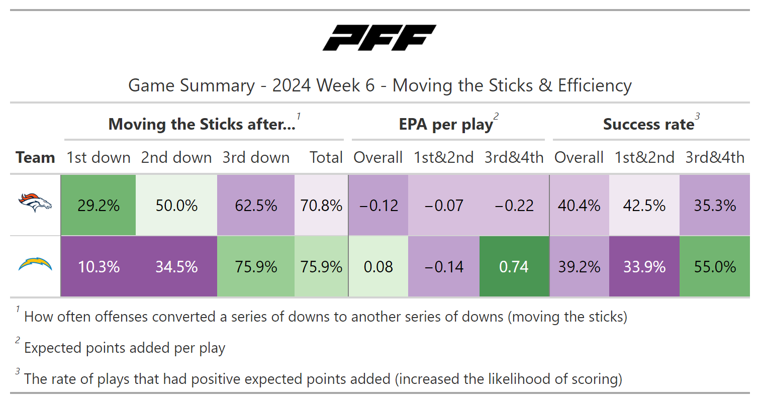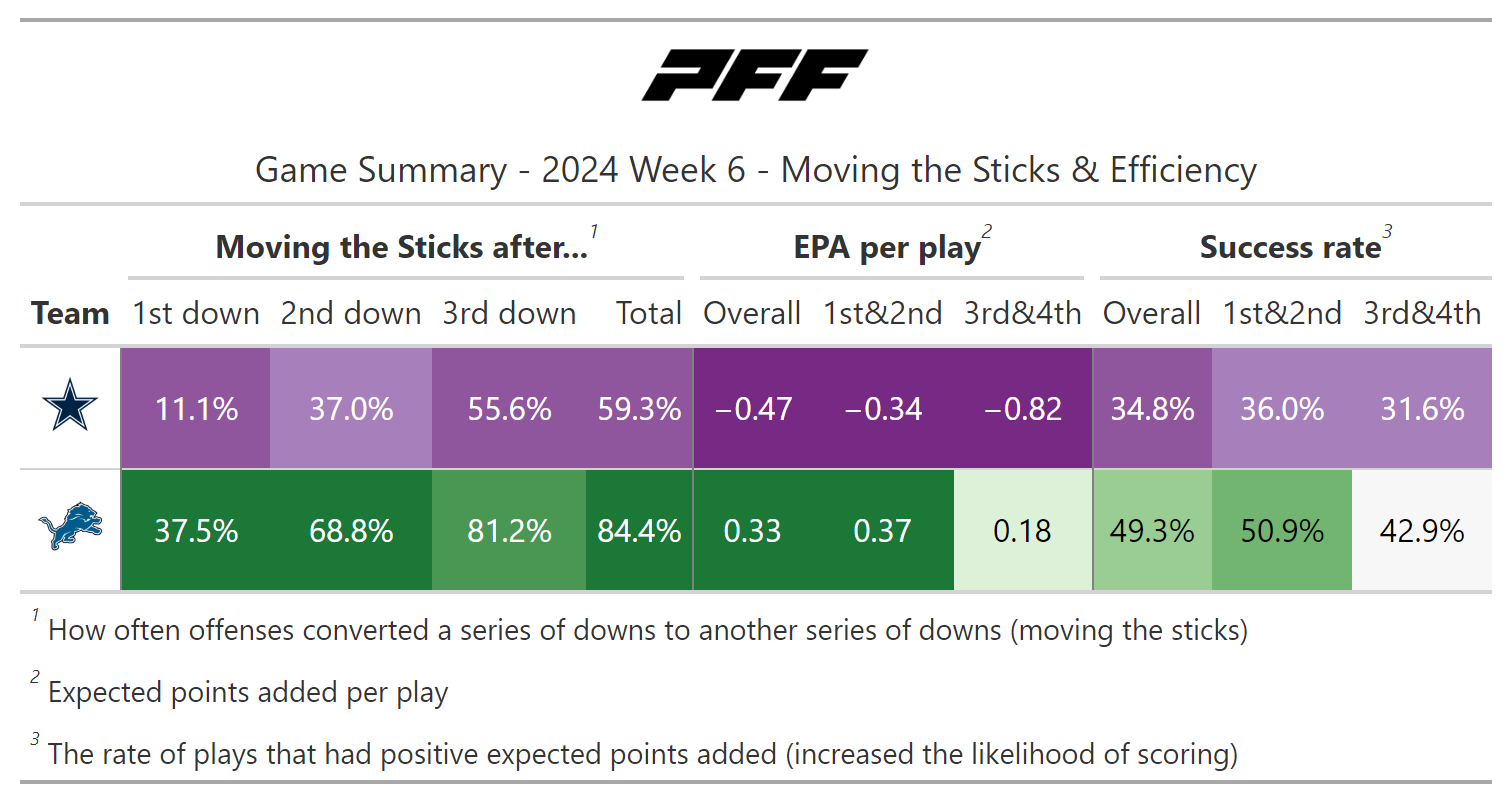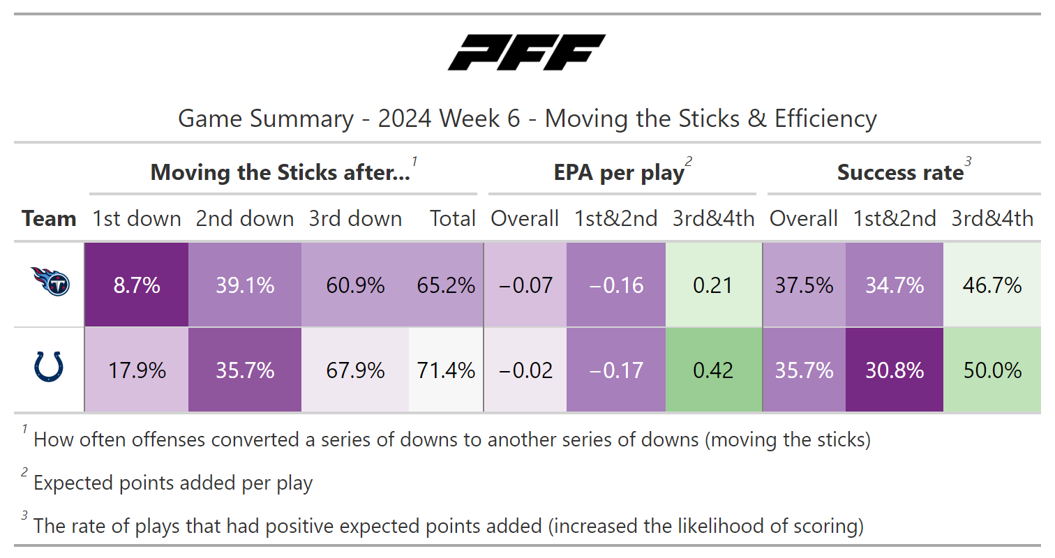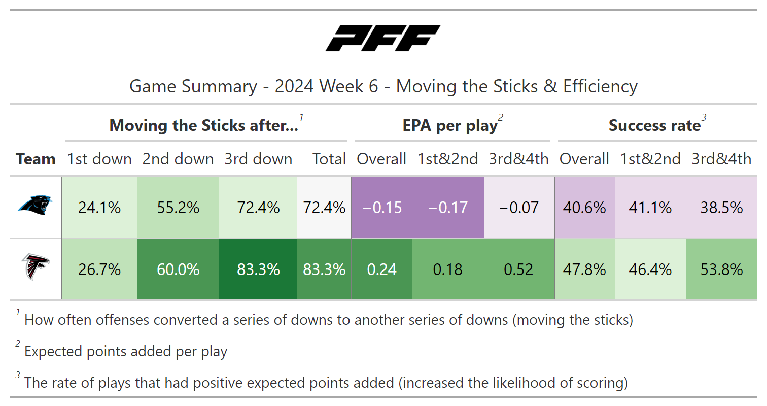 PFF broke down the advanced metrics immediately after every game of the Week 6 slate, giving an in-depth look at the numbers behind every contest.