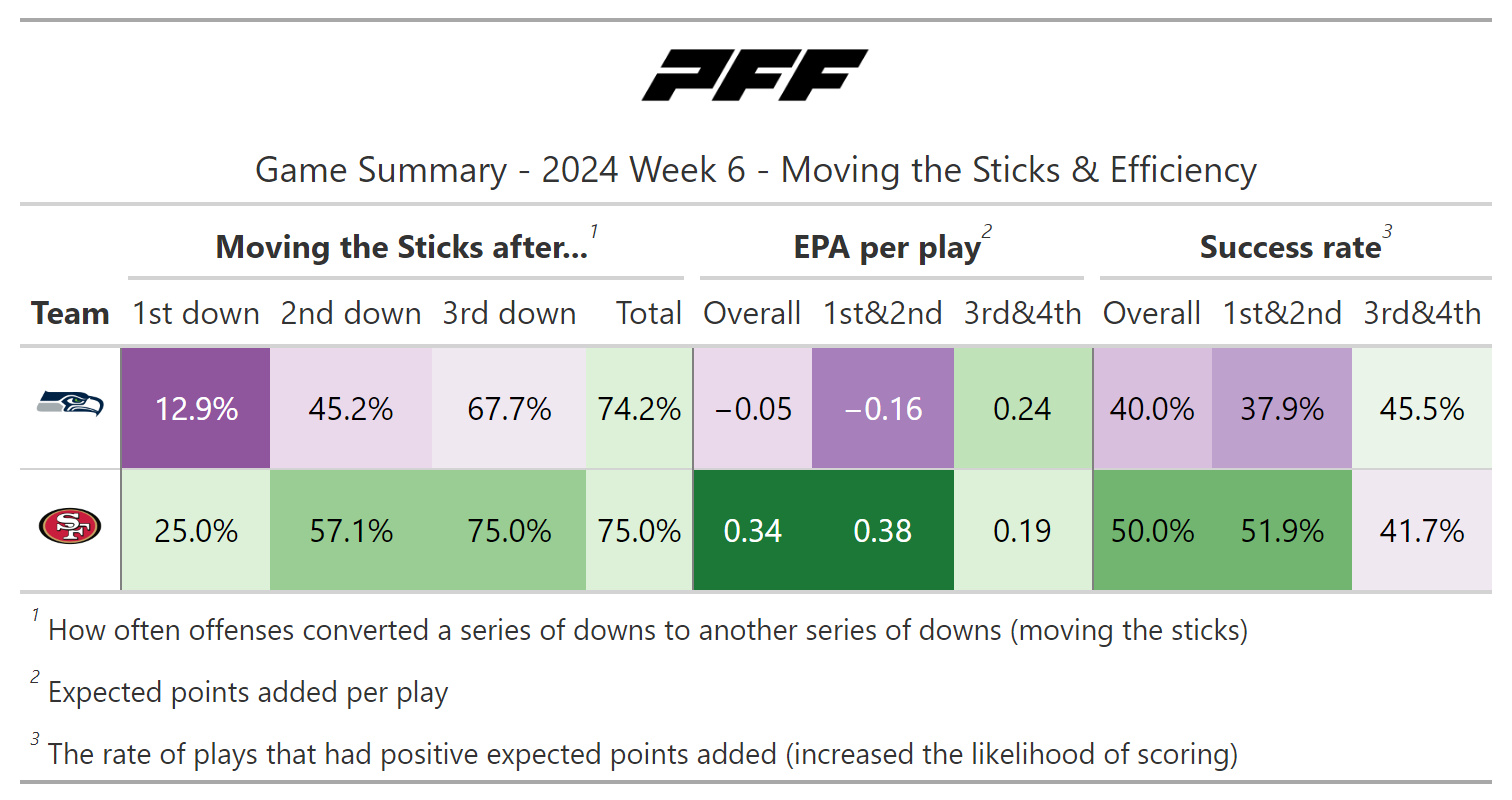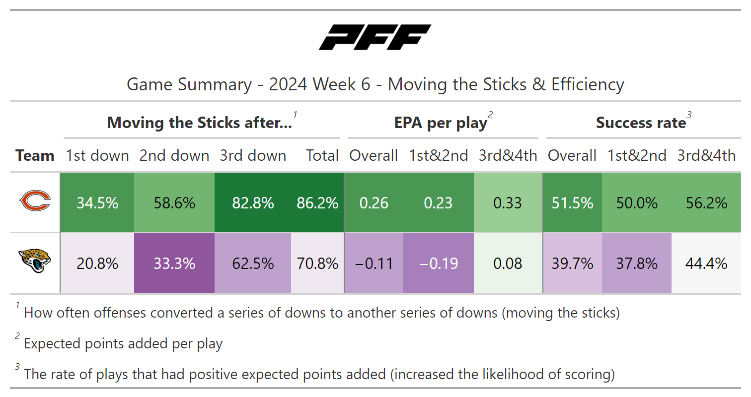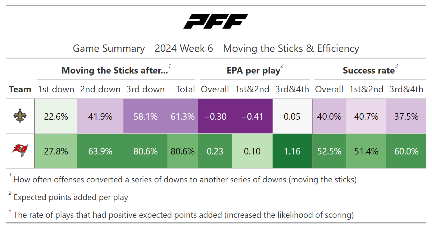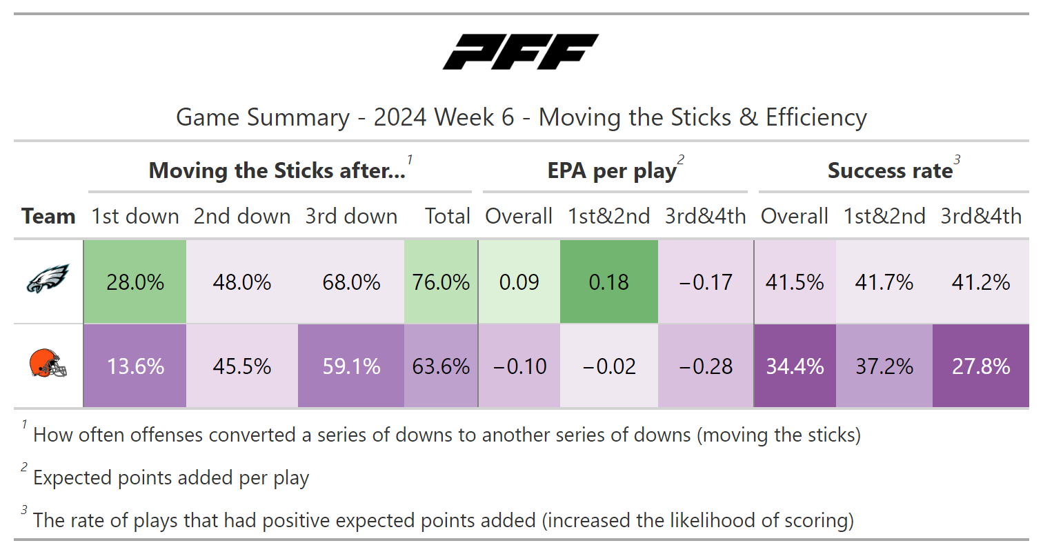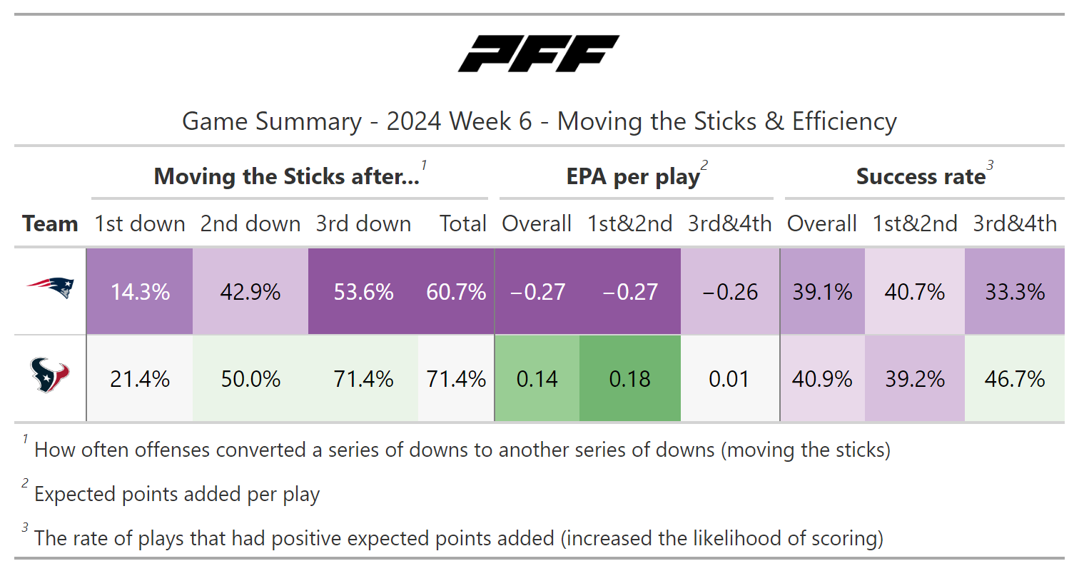 PFF broke down the advanced metrics immediately after every game of the Week 6 slate, giving an in-depth look at the numbers behind every contest.