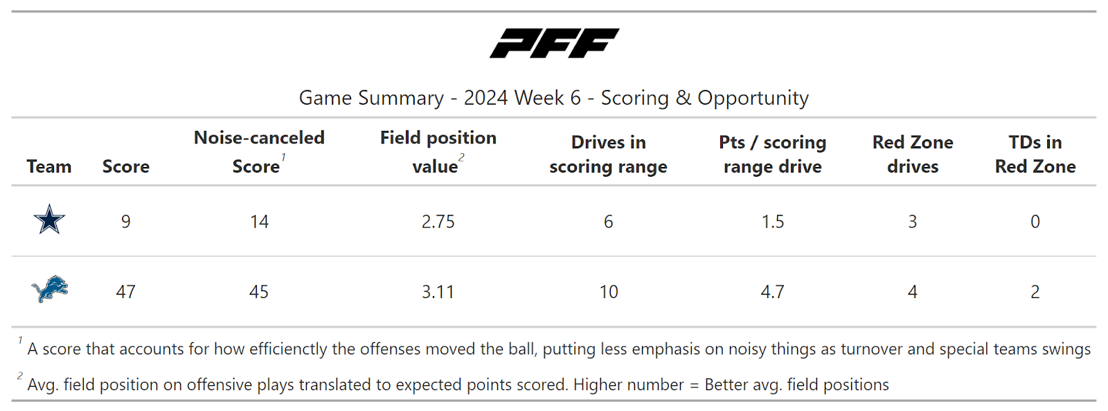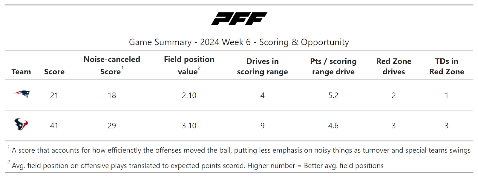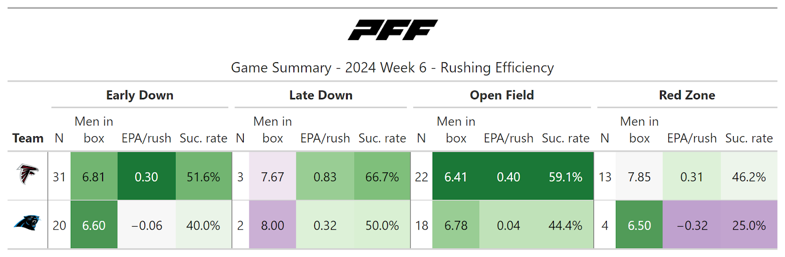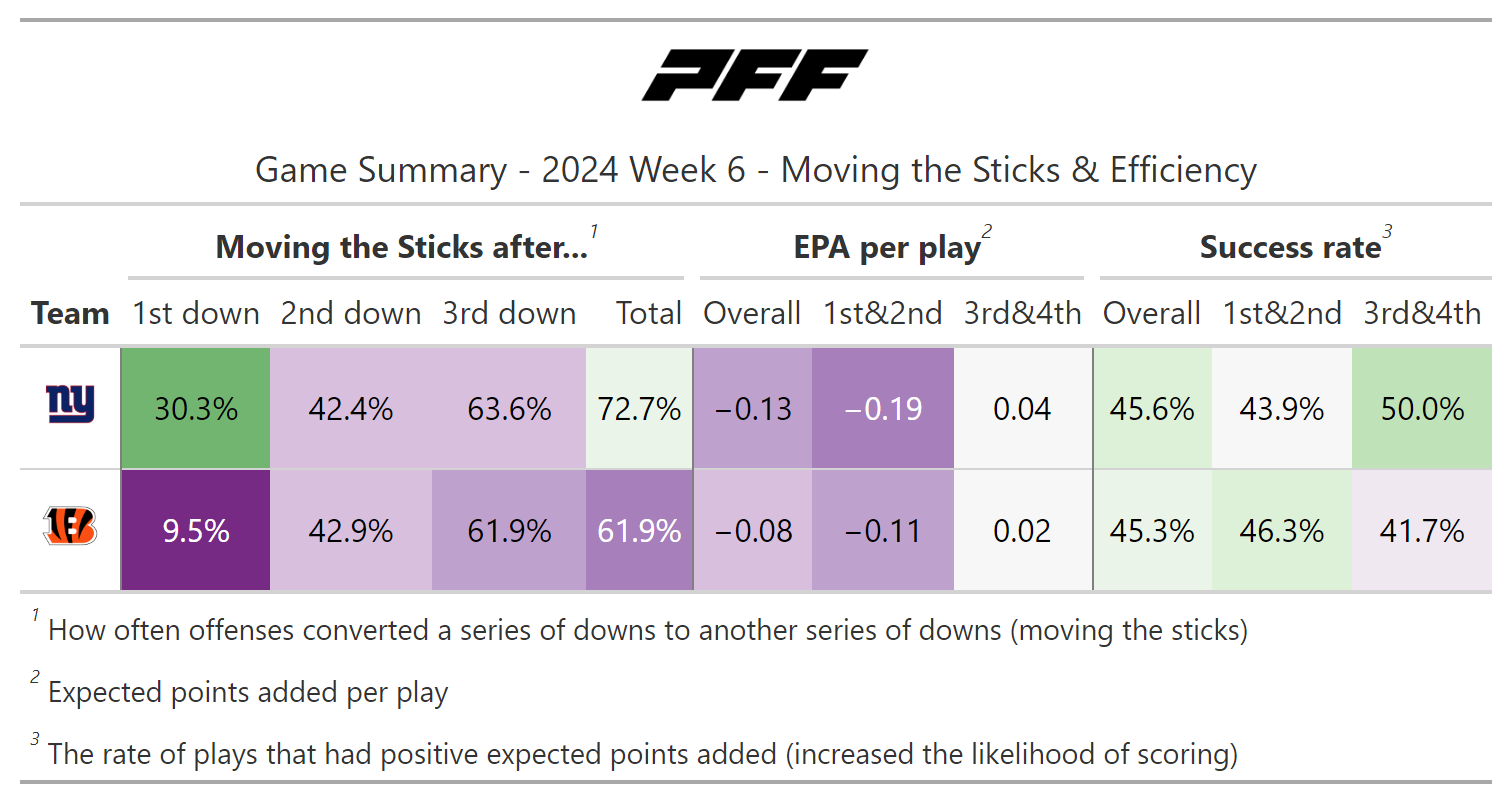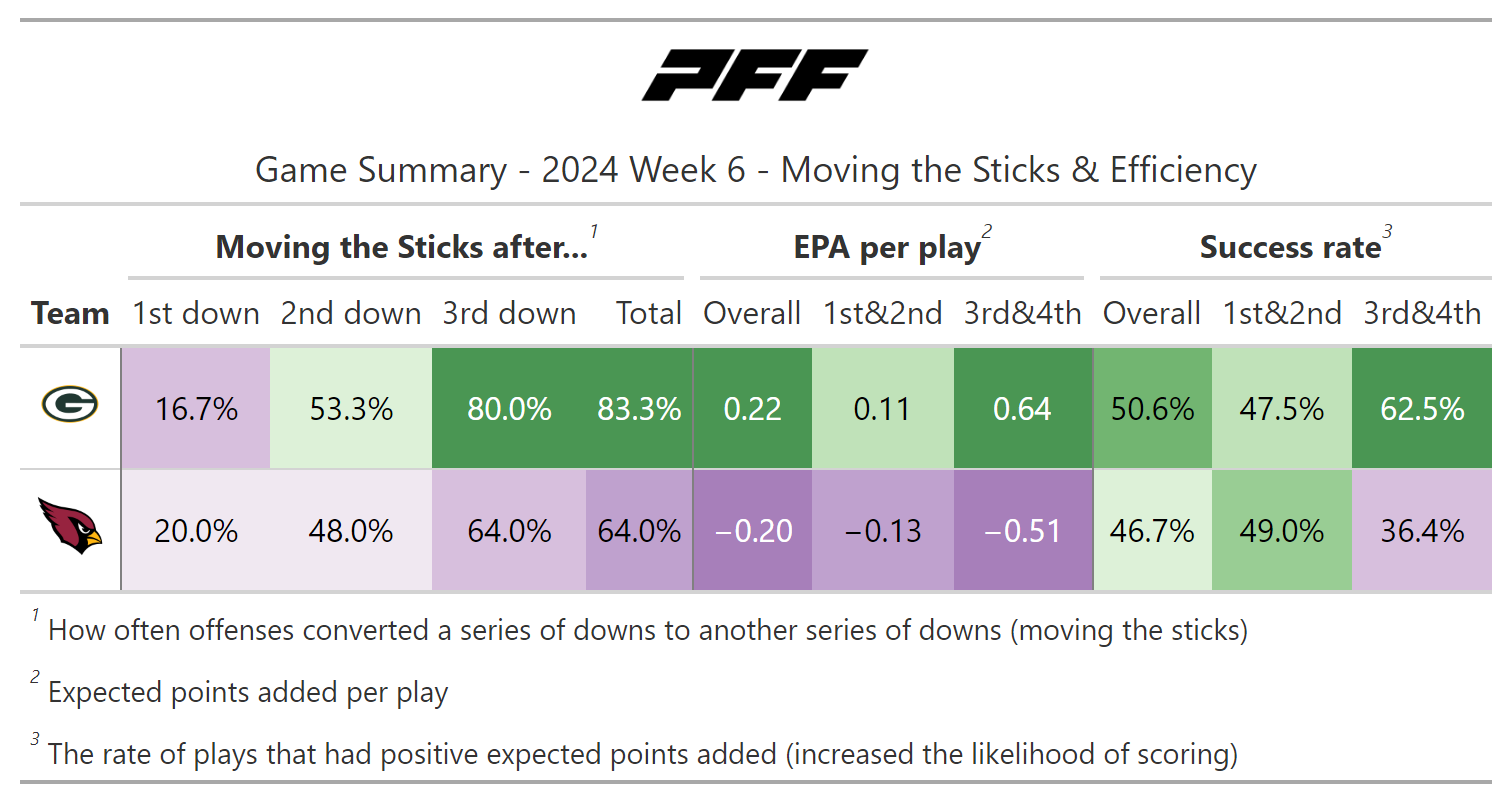 PFF broke down the advanced metrics immediately after every game of the Week 6 slate, giving an in-depth look at the numbers behind every contest.