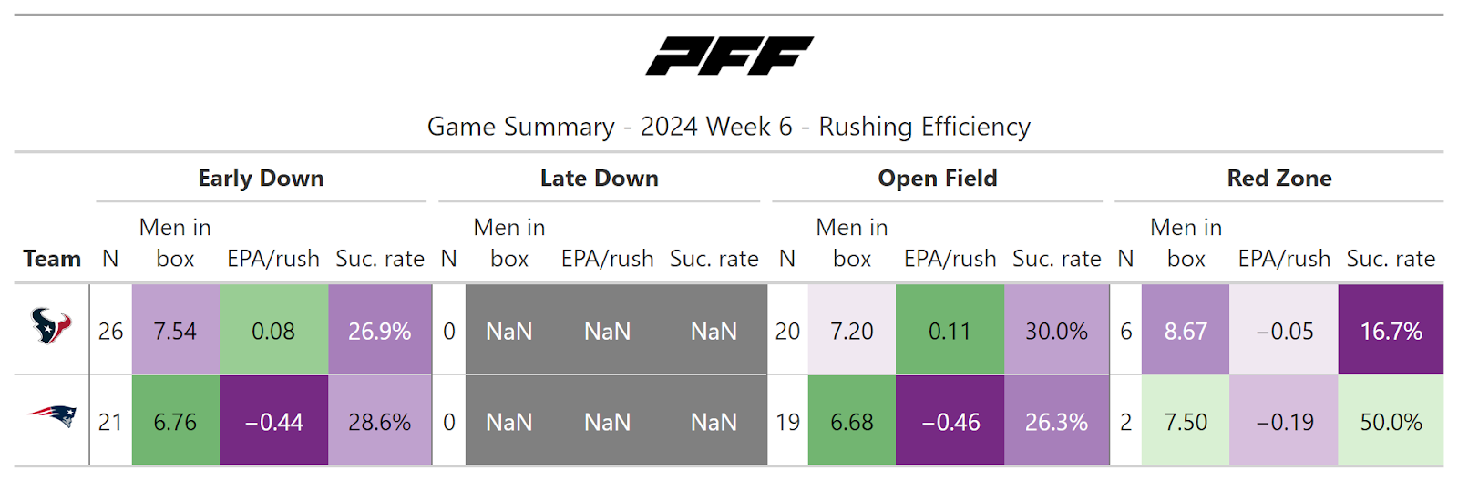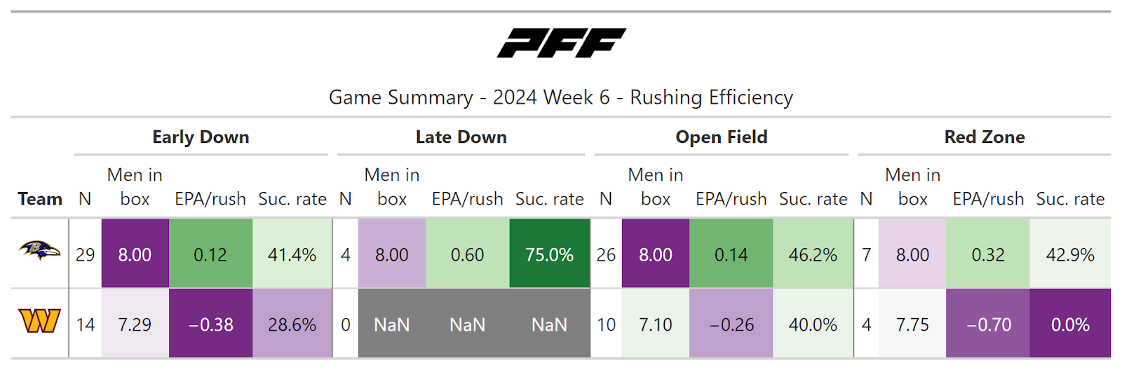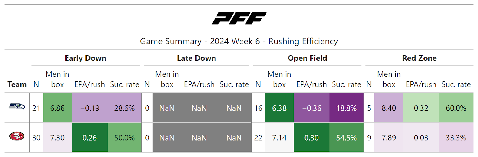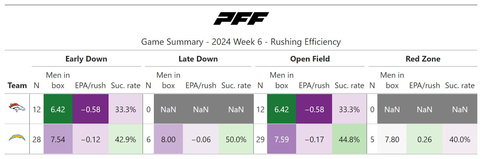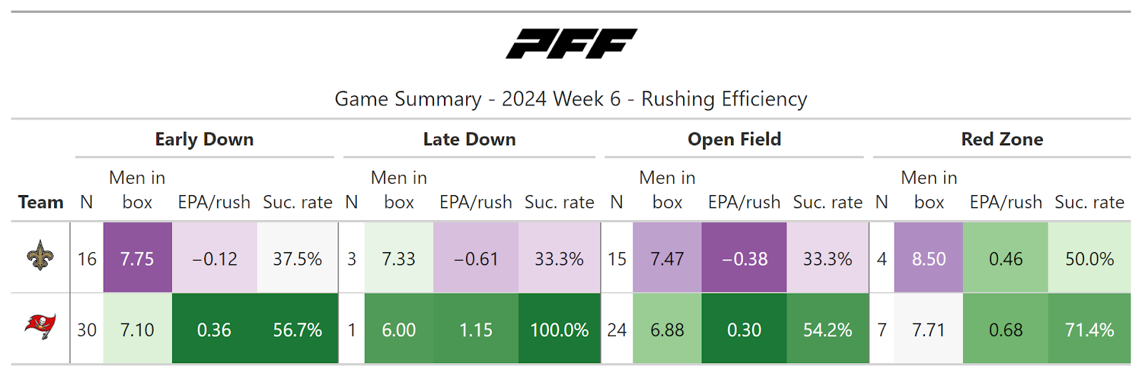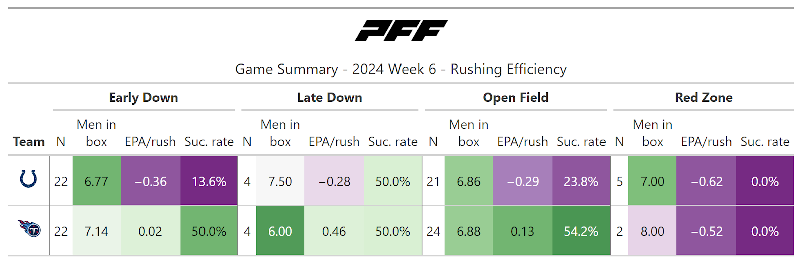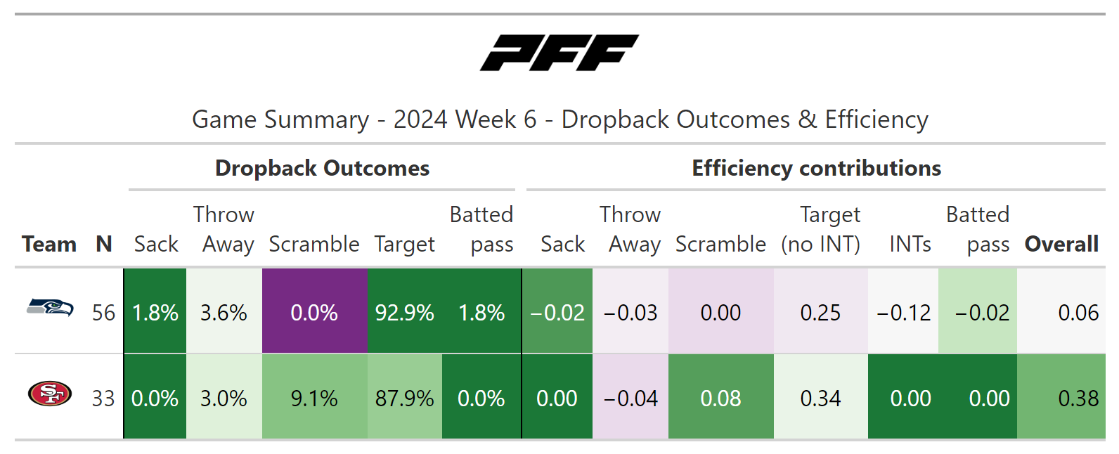 PFF broke down the advanced metrics immediately after every game of the Week 6 slate, giving an in-depth look at the numbers behind every contest.