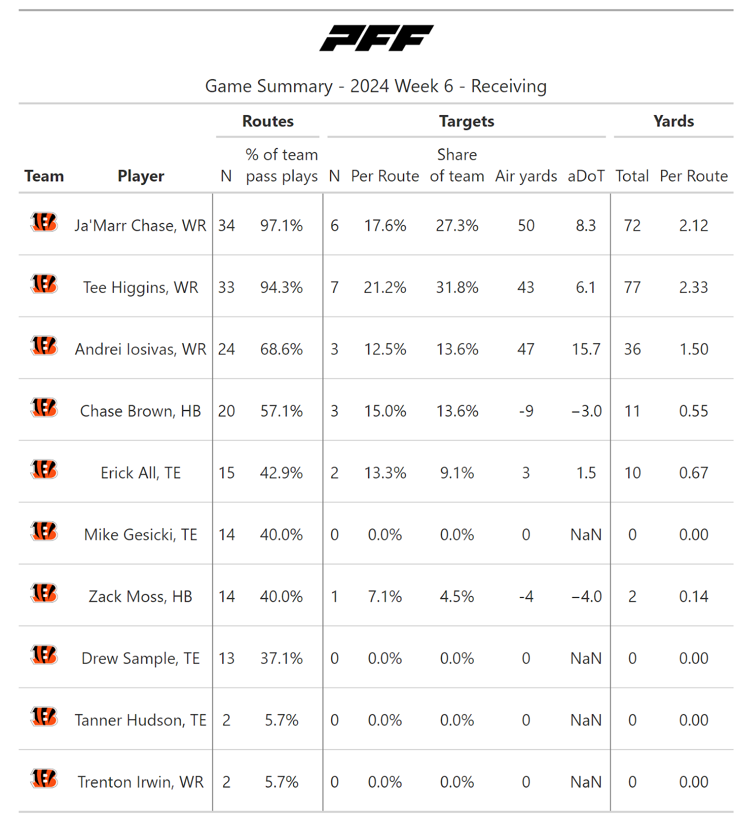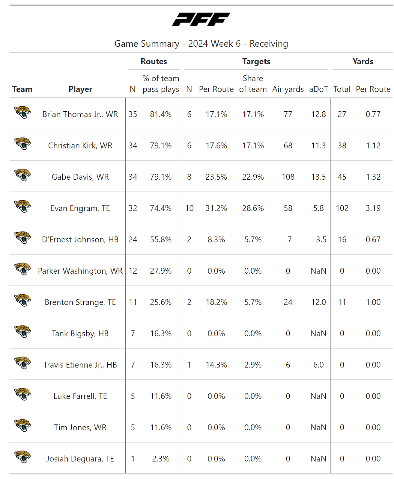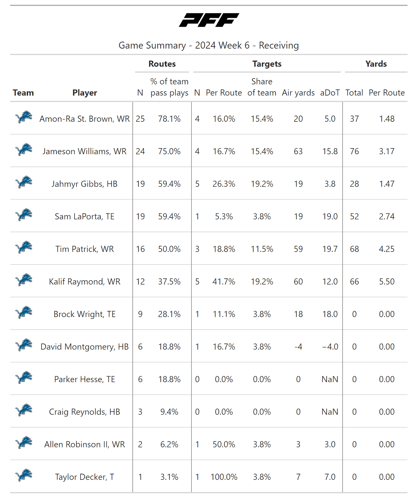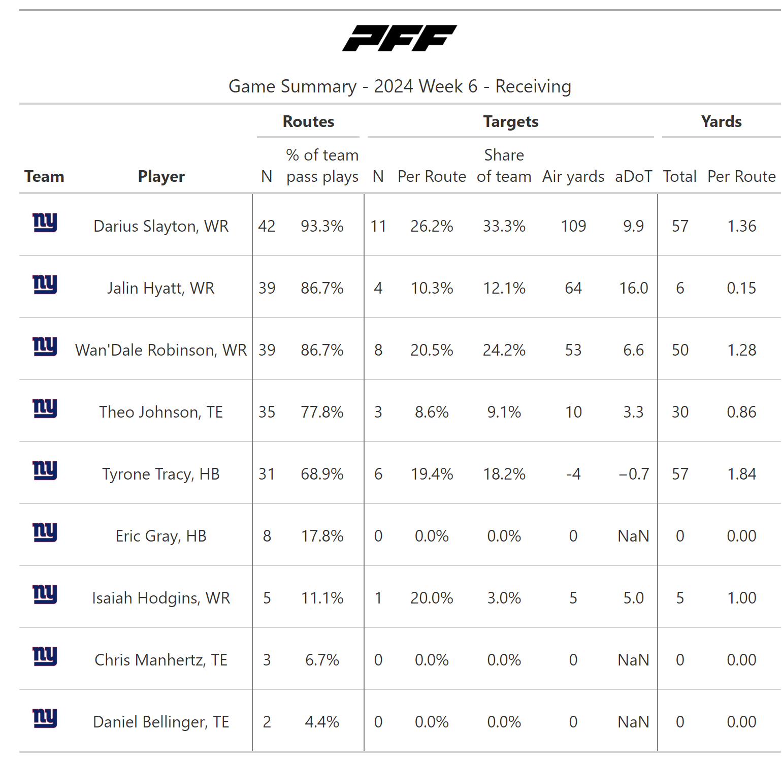 For more statistics, snap counts and PFF grades, check out PFF Premium Stats.