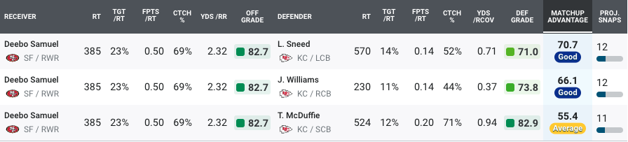 Postseason: WR Deebo Samuel, San Francisco 49ers (90.9%)