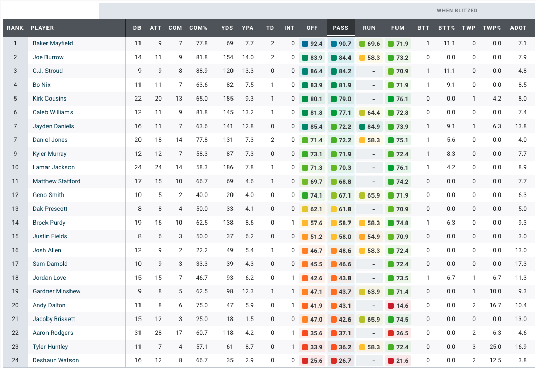 Why the Texans won: C.J. Stroud completed 21-of-26 passes for 222 yards and a touchdown when operating out of a clean pocket and performed almost perfectly against the blitz, completing eight of his nine passing attempts to earn an 86.4 passing grade on those throws.